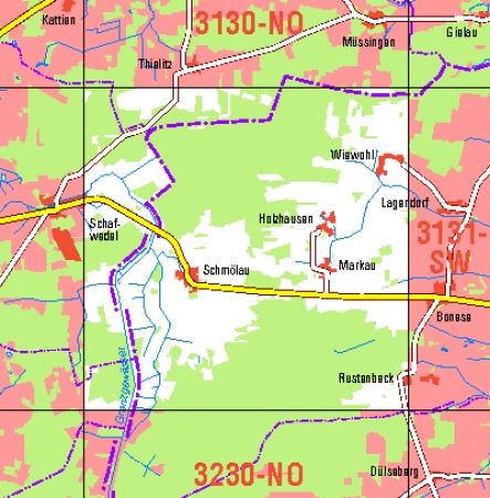 Maßstab 1:10 000, Nomenklatur: 3130-SO, Name des Kartenblatts: Holzhausen, Auflagejahr: 2022, Der Anteil Sachsen-Anhalt (ST) kann bis zur Landesgrenze Niedersachsen (NI) bereitgestellt werden. Das Gebiet zu NI wird als weiße Fläche dargestellt. Blattschnitt: Normalblattschnitt ...