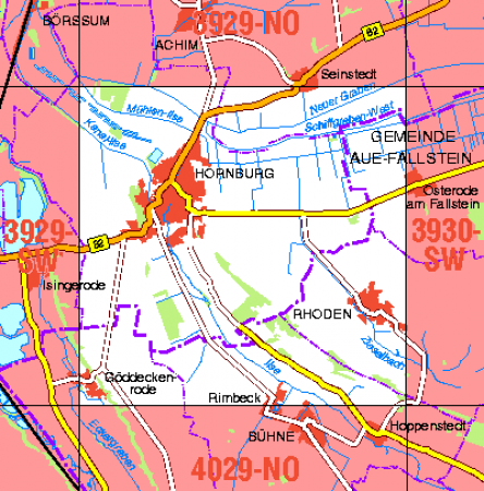Maßstab 1:10 000, Nomenklatur: 3929-SO, Name des Kartenblatts: Hornburg, Auflagejahr: 2021, Der Anteil Sachsen-Anhalt (ST) kann bis zur Landesgrenze Niedersachsen (NI) bereitgestellt werden. Das Gebiet zu NI wird als weiße Fläche dargestellt. Blattschnitt: Normalblattschnitt ...