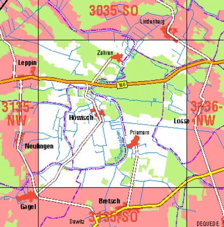 Maßstab 1:10 000, Nomenklatur: 3135-NO, Name des Kartenblatts: Höwisch, Auflagejahr: 2022, Blattschnitt: Normalblattschnitt (Preußische Landesaufnahme), Gradabteilungskarte mit 5 min geographischer Länge und 3 min geographischer Breite, Geodätischer Raumbezug: GRS80-Ellipsoid, ...