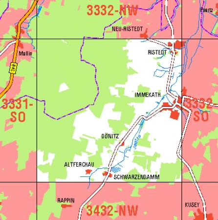 Maßstab 1:10 000, Nomenklatur: 3332-SW, Name des Kartenblatts: Immekath, Auflagejahr: 2023, Blattschnitt: Normalblattschnitt (Preußische Landesaufnahme), Gradabteilungskarte mit 5 min geographischer Länge und 3 min geographischer Breite, Geodätischer Raumbezug: GRS80-Ellipsoid, ...
