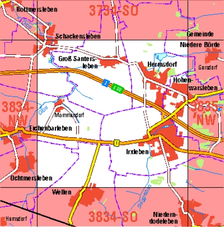 Maßstab 1:10 000, Nomenklatur: 3834-NO, Name des Kartenblatts: Irxleben, Auflagejahr: 2022, Blattschnitt: Normalblattschnitt (Preußische Landesaufnahme), Gradabteilungskarte mit 5 min geographischer Länge und 3 min geographischer Breite, Geodätischer Raumbezug: GRS80-Ellipsoid, ...