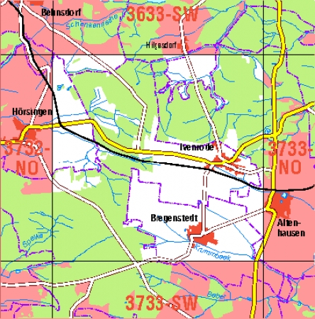 Maßstab 1:10 000, Nomenklatur: 3733-NW, Name des Kartenblatts: Ivenrode, Auflagejahr: 2023, Blattschnitt: Normalblattschnitt (Preußische Landesaufnahme), Gradabteilungskarte mit 5 min geographischer Länge und 3 min geographischer Breite, Geodätischer Raumbezug: GRS80-Ellipsoid, ...
