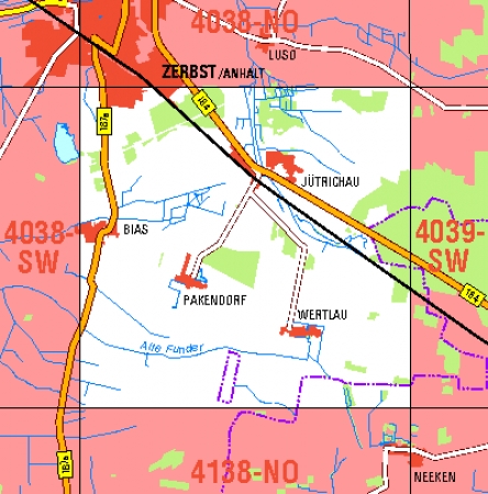 Maßstab 1:10 000, Nomenklatur: 4038-SO, Name des Kartenblatts: Jütrichau, Auflagejahr: 2024, Blattschnitt: Normalblattschnitt (Preußische Landesaufnahme), Gradabteilungskarte mit 5 min geographischer Länge und 3 min geographischer Breite, Geodätischer Raumbezug: GRS80-Ellipsoid, ...