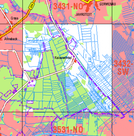 Maßstab 1:10 000, Nomenklatur: 3431-SO, Name des Kartenblatts: Kaiserwinkel, Auflagejahr: 2022, Der Anteil Sachsen-Anhalt (ST) kann bis zur Landesgrenze Niedersachsen (NI) bereitgestellt werden. Das Gebiet zu NI wird als weiße Fläche dargestellt. ...