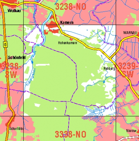 Maßstab 1:10 000, Nomenklatur: 3238-SO, Name des Kartenblatts: Kamern, Auflagejahr: 2023, Blattschnitt: Normalblattschnitt (Preußische Landesaufnahme), Gradabteilungskarte mit 5 min geographischer Länge und 3 min geographischer Breite, Geodätischer Raumbezug: GRS80-Ellipsoid, ...