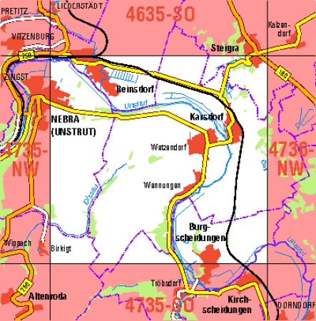Maßstab 1:10 000, Nomenklatur: 4735-NO, Name des Kartenblatts: Karsdorf, Auflagejahr: 2021, Blattschnitt: Normalblattschnitt (Preußische Landesaufnahme), Gradabteilungskarte mit 5 min geographischer Länge und 3 min geographischer Breite, Geodätischer Raumbezug: GRS80-Ellipsoid, ...