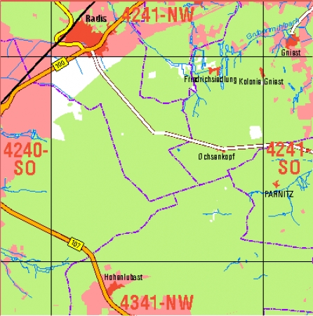 Maßstab 1:10 000, Nomenklatur: 4240-NW, Name des Kartenblatts: Oranienbaum S, Auflagejahr: 2020, Blattschnitt: Normalblattschnitt (Preußische Landesaufnahme), Gradabteilungskarte mit 5 min geographischer Länge und 3 min geographischer Breite, Geodätischer Raumbezug: GRS80-Ellipsoid, ...