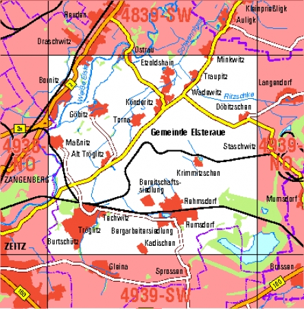 Maßstab 1:10 000, Nomenklatur: 4939-NW, Name des Kartenblatts: Rehmsdorf, Auflagejahr: 2022, Blattschnitt: Normalblattschnitt (Preußische Landesaufnahme), Gradabteilungskarte mit 5 min geographischer Länge und 3 min geographischer Breite, Geodätischer Raumbezug: GRS80-Ellipsoid, ...