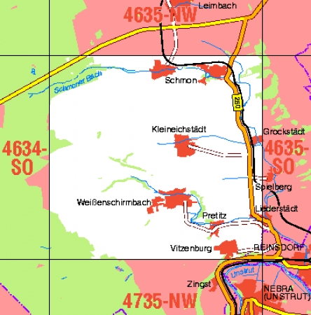 Maßstab 1:10 000, Nomenklatur: 4635-SW, Name des Kartenblatts: Schmon, Auflagejahr: 2025, Blattschnitt: Normalblattschnitt (Preußische Landesaufnahme), Gradabteilungskarte mit 5 min geographischer Länge und 3 min geographischer Breite, Geodätischer Raumbezug: GRS80-Ellipsoid, ...