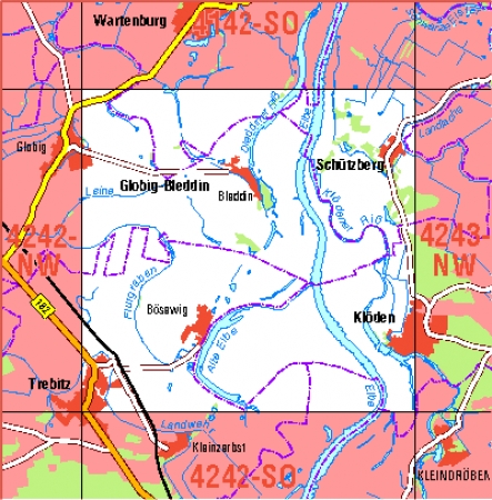 Maßstab 1:10 000, Nomenklatur: 2935-SW, Name des Kartenblatts: Schnackenburg, Auflagejahr: 2021, Der Anteil Sachsen-Anhalt (ST) kann bis zur Landesgrenze Niedersachsen (NI) bereitgestellt werden. Das Gebiet zu NI wird als weiße Fläche dargestellt. Blattschnitt: Normalblattschnitt ...