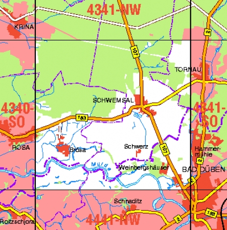 Maßstab 1:10 000, Nomenklatur: 4341-SW, Name des Kartenblatts: Schwemsal, Auflagejahr: 2022, Blattschnitt: Normalblattschnitt (Preußische Landesaufnahme), Gradabteilungskarte mit 5 min geographischer Länge und 3 min geographischer Breite, Geodätischer Raumbezug: GRS80-Ellipsoid, ...