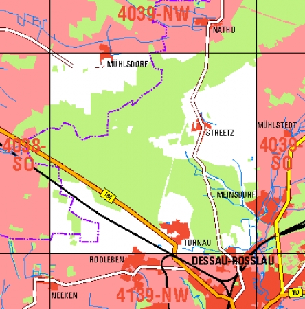 Maßstab 1:10 000, Nomenklatur: 4039-SW, Name des Kartenblatts: Streetz, Auflagejahr: 2022, Blattschnitt: Normalblattschnitt (Preußische Landesaufnahme), Gradabteilungskarte mit 5 min geographischer Länge und 3 min geographischer Breite, Geodätischer Raumbezug: GRS80-Ellipsoid, ...