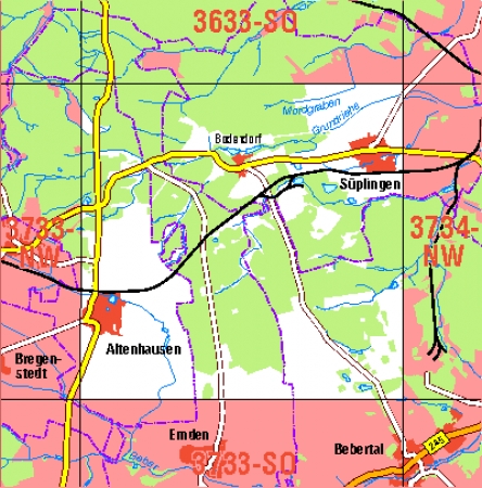 Maßstab 1:10 000, Nomenklatur: 3733-NO, Name des Kartenblatts: Süplingen, Auflagejahr: 2025, Blattschnitt: Normalblattschnitt (Preußische Landesaufnahme), Gradabteilungskarte mit 5 min geographischer Länge und 3 min geographischer Breite, Geodätischer Raumbezug: GRS80-Ellipsoid, ...