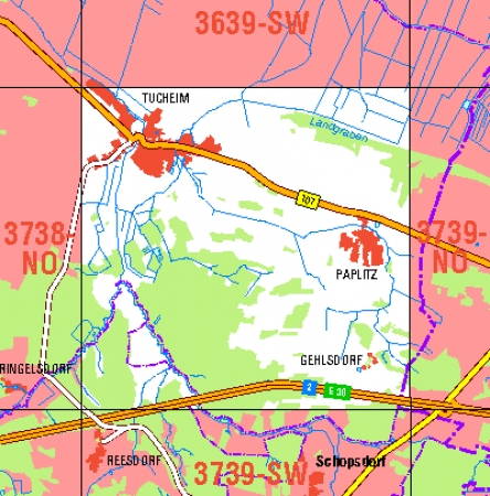 Maßstab 1:10 000, Nomenklatur: 3739-NW, Name des Kartenblatts: Tucheim, Auflagejahr: 2022, Blattschnitt: Normalblattschnitt (Preußische Landesaufnahme), Gradabteilungskarte mit 5 min geographischer Länge und 3 min geographischer Breite, Geodätischer Raumbezug: GRS80-Ellipsoid, ...