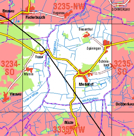 Maßstab 1:10 000, Nomenklatur: 3235-SW, Name des Kartenblatts: Meßdorf, Auflagejahr: 2020, Blattschnitt: Normalblattschnitt (Preußische Landesaufnahme), Gradabteilungskarte mit 5 min geographischer Länge und 3 min geographischer Breite, Geodätischer Raumbezug: GRS80-Ellipsoid, ...