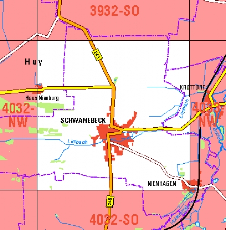 Maßstab 1:10 000, Nomenklatur: 4032-NO, Name des Kartenblatts: Schwanebeck, Auflagejahr: 2022, Blattschnitt: Normalblattschnitt (Preußische Landesaufnahme), Gradabteilungskarte mit 5 min geographischer Länge und 3 min geographischer Breite, Geodätischer Raumbezug: GRS80-Ellipsoid, ...
