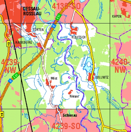 Maßstab 1:10 000, Nomenklatur: 4239-NO, Name des Kartenblatts: Sollnitz, Auflagejahr: 2024, Blattschnitt: Normalblattschnitt (Preußische Landesaufnahme), Gradabteilungskarte mit 5 min geographischer Länge und 3 min geographischer Breite, Geodätischer Raumbezug: GRS80-Ellipsoid, ...