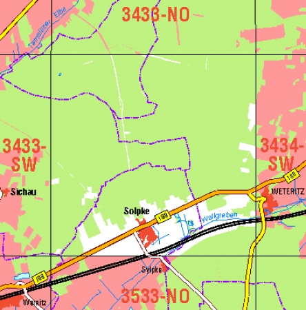 Maßstab 1:10 000, Nomenklatur: 3130-NO, Name des Kartenblatts: Soltendieck, Auflagejahr: 2021, Der Anteil Sachsen-Anhalt (ST) kann bis zur Landesgrenze Niedersachsen (NI) bereitgestellt werden. Das Gebiet zu NI wird als weiße Fläche dargestellt. Blattschnitt: Normalblattschnitt ...