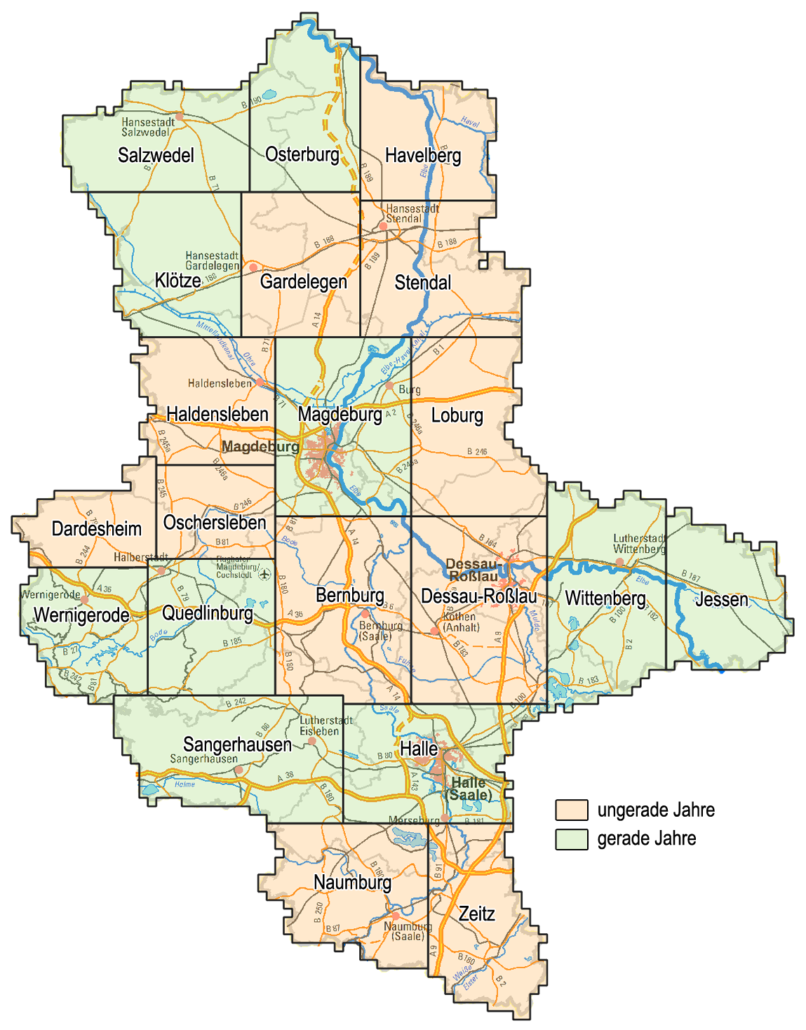 Digitale Orthophotos werden auch als WMS angeboten. Sie sind in unterschiedlicher Bodenauflösung (20 cm, 100 cm) flächendeckend für Sachsen-Anhalt auf Grundlage der aktuellen Befliegungen erhältlich. Sie werden durch Parallelprojektion erzeugt und haben einen über die ganze Bildfläche einheitlichen Maßstab.