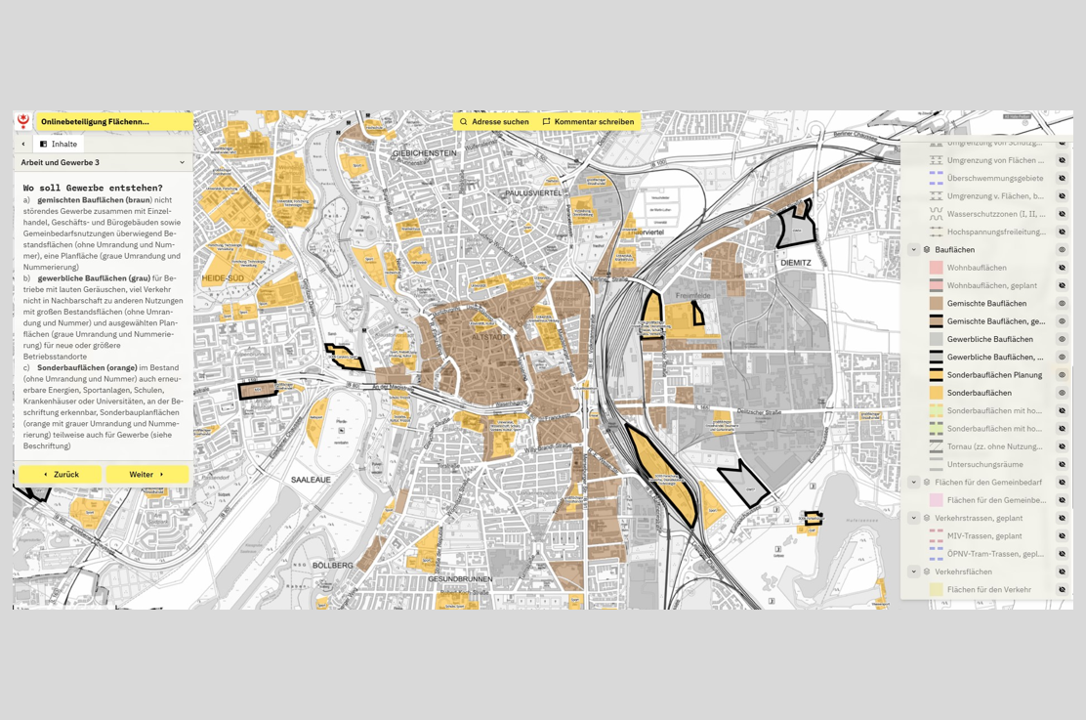 In den vergangenen Monaten wurden zahlreiche neue Module integriert und bestehende Funktionen gezielt ausgebaut. Maßgeblich hierfür ist die wachsende Gemeinschaft aus Kommunen, Landesakteuren und Entwicklungspartnern, die ihre fachlichen Anforderungen und Erfahrungen aktiv einbringt. Mit einem neuen Beteiligungsmodul stellt die Stadt Halle (Saale) projektbezogene Informationen per digitalem Storytelling bereit und leitet Nutzende gezielt durch den Beteiligungsprozess. Ein sichtbares Ergebnis dieser Dynamik ist ebenfalls das Projekt „HAL-City“, das im Rahmen des Landesprogramms „Sachsen-Anhalt Digital 2030“ gefördert wird.