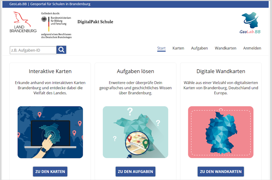 Der gedruckte Atlas war über Jahrzehnte fester Bestandteil in zahlreichen Klassenzimmern. Durch den digitalen Wandel hat sich der Umgang mit Karten und Geodaten im Schulunterricht geändert. Digitale Karten sind auf Smartphones, Tablets, in Navigationssystemen etc. jederzeit verfügbar und allgegenwärtig. Umso wichtiger ist es, in der Schule den Umgang mit digitalen Kartenmedien und Geodaten frühzeitig zu lernen. Als neues Geoportal für den Schulunterricht ermöglicht genau diesen Umgang das GeoLab.BB (Abb. 1).