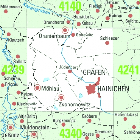 Maßstab 1:25 000, Nomenklatur: 4240, Name des Kartenblatts: Gräfenhainichen, Auflagejahr: 2023, Blattschnitt: Normalblattschnitt (Preußische Landesaufnahme), Gradabteilungskarte mit 10 min geographischer Länge und 6 min geographischer Breite, Geodätischer Raumbezug: ...