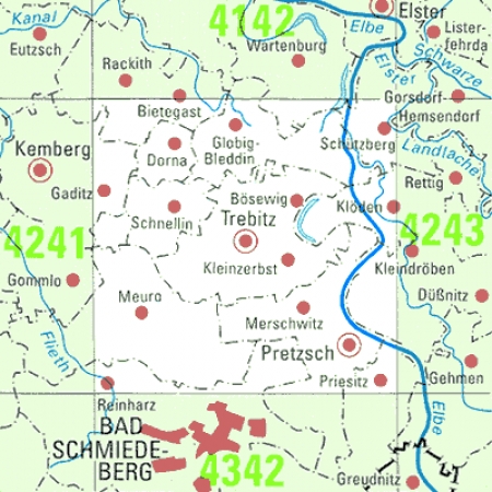 Maßstab 1:25 000, Nomenklatur: 4241, Name des Kartenblatts: Kemberg, Auflagejahr: 2023, Blattschnitt: Normalblattschnitt (Preußische Landesaufnahme), Gradabteilungskarte mit 10 min geographischer Länge und 6 min geographischer Breite, Geodätischer Raumbezug: GRS80-Ellipsoid, ...