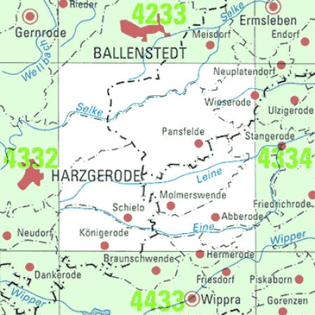 Maßstab 1:25 000, Nomenklatur: 4333, Name des Kartenblatts: Königerode, Auflagejahr: 2024, Blattschnitt: Normalblattschnitt (Preußische Landesaufnahme), Gradabteilungskarte mit 10 min geographischer Länge und 6 min geographischer Breite, Geodätischer Raumbezug: GRS80-Ellipsoid, ...