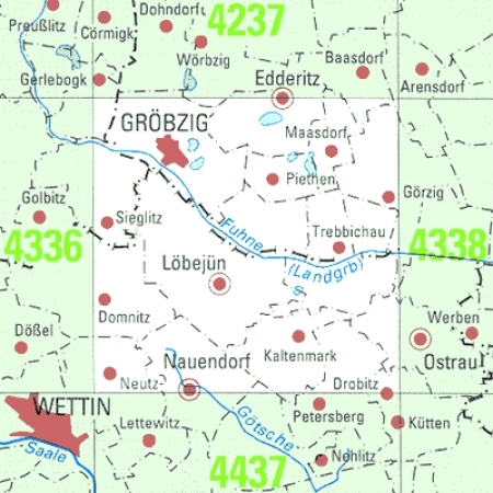 Maßstab 1:25 000, Nomenklatur: 4337, Name des Kartenblatts: Gröbzig, Auflagejahr: 2025, Blattschnitt: Normalblattschnitt (Preußische Landesaufnahme), Gradabteilungskarte mit 10 min geographischer Länge und 6 min geographischer Breite, Geodätischer Raumbezug: GRS80-Ellipsoid, ...