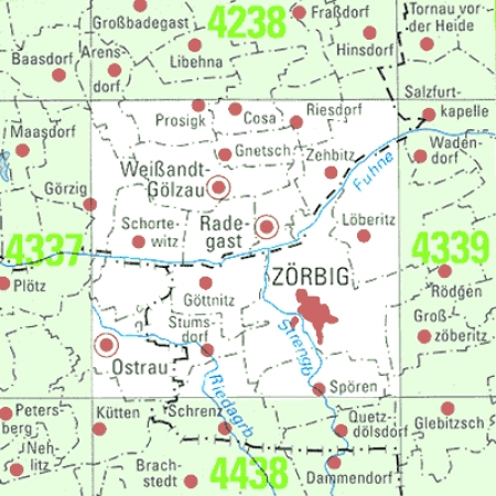 Maßstab 1:25 000, Nomenklatur: 4338, Name des Kartenblatts: Zörbig, Auflagejahr: 2025, Blattschnitt: Normalblattschnitt (Preußische Landesaufnahme), Gradabteilungskarte mit 10 min geographischer Länge und 6 min geographischer Breite, Geodätischer Raumbezug: GRS80-Ellipsoid, ...
