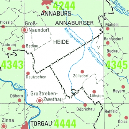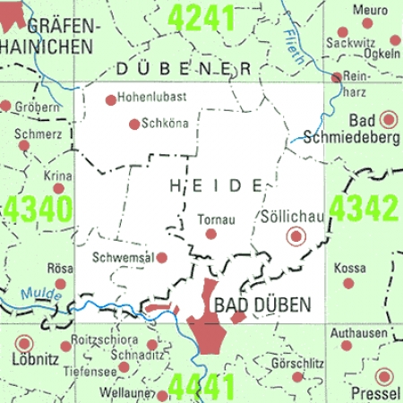 Maßstab 1:25 000, Nomenklatur: 4341, Name des Kartenblatts: Söllichau, Auflagejahr: 2022, Blattschnitt: Normalblattschnitt (Preußische Landesaufnahme), Gradabteilungskarte mit 10 min geographischer Länge und 6 min geographischer Breite, Geodätischer Raumbezug: GRS80-Ellipsoid, ...