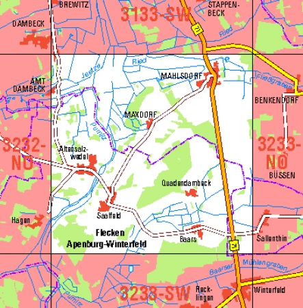 Maßstab 1:10 000, Nomenklatur: 3233-NW, Name des Kartenblatts: Altensalzwedel, Auflagejahr: 2023, Blattschnitt: Normalblattschnitt (Preußische Landesaufnahme), Gradabteilungskarte mit 5 min geographischer Länge und 3 min geographischer Breite, Geodätischer Raumbezug: GRS80-Ellipsoid, ...