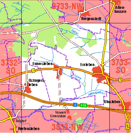 Maßstab 1:10 000, Nomenklatur: 3733-SW, Name des Kartenblatts: Erxleben, Auflagejahr: 2024, Blattschnitt: Normalblattschnitt (Preußische Landesaufnahme), Gradabteilungskarte mit 5 min geographischer Länge und 3 min geographischer Breite, Geodätischer Raumbezug: GRS80-Ellipsoid, ...