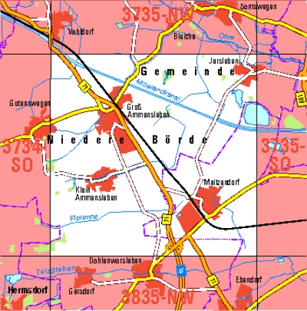 Maßstab 1:10 000, Nomenklatur: 3735-SW, Name des Kartenblatts: Groß Ammensleben, Auflagejahr: 2025, Blattschnitt: Normalblattschnitt (Preußische Landesaufnahme), Gradabteilungskarte mit 5 min geographischer Länge und 3 min geographischer Breite, Geodätischer Raumbezug: ...