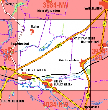 Maßstab 1:10 000, Nomenklatur: 3934-SW, Name des Kartenblatts: Groß Germersleben, Auflagejahr: 2021, Blattschnitt: Normalblattschnitt (Preußische Landesaufnahme), Gradabteilungskarte mit 5 min geographischer Länge und 3 min geographischer Breite, Geodätischer Raumbezug: ...