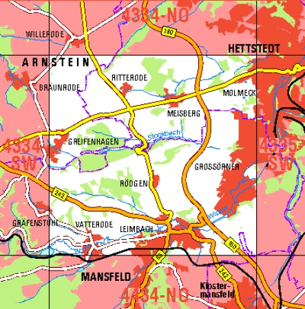 Maßstab 1:10 000, Nomenklatur: 4334-SO, Name des Kartenblatts: Großörner, Auflagejahr: 2021, Blattschnitt: Normalblattschnitt (Preußische Landesaufnahme), Gradabteilungskarte mit 5 min geographischer Länge und 3 min geographischer Breite, Geodätischer Raumbezug: ...