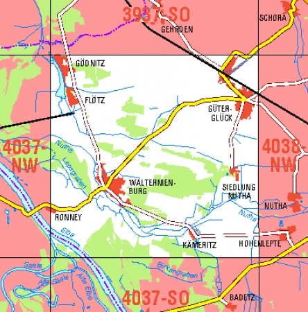 Maßstab 1:10 000, Nomenklatur: 4037-NO, Name des Kartenblatts: Güterglück, Auflagejahr: 2022, Blattschnitt: Normalblattschnitt (Preußische Landesaufnahme), Gradabteilungskarte mit 5 min geographischer Länge und 3 min geographischer Breite, Geodätischer Raumbezug: ...