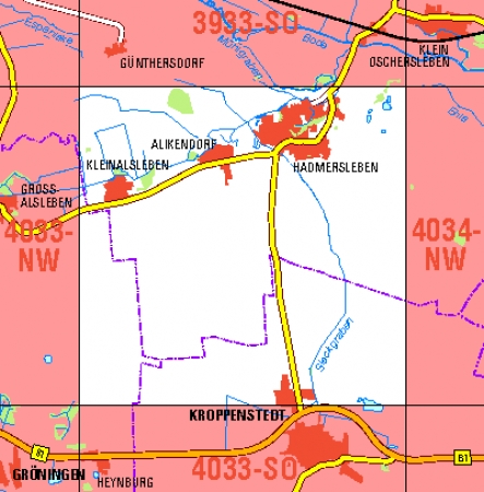 Maßstab 1:10 000, Nomenklatur: 4033-NO, Name des Kartenblatts: Hadmersleben, Auflagejahr: 2022, Blattschnitt: Normalblattschnitt (Preußische Landesaufnahme), Gradabteilungskarte mit 5 min geographischer Länge und 3 min geographischer Breite, Geodätischer Raumbezug: GRS80-Ellipsoid, ...