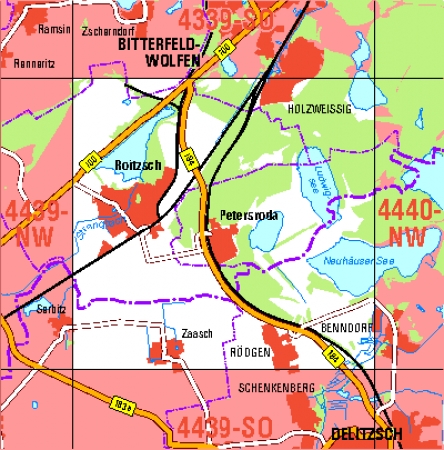 Maßstab 1:10 000, Nomenklatur: 4439-NO, Name des Kartenblatts: Roitzsch, Auflagejahr: 2022, Blattschnitt: Normalblattschnitt (Preußische Landesaufnahme), Gradabteilungskarte mit 5 min geographischer Länge und 3 min geographischer Breite, Geodätischer Raumbezug: GRS80-Ellipsoid, ...