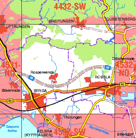 Maßstab 1:10 000, Nomenklatur: 4532-NW, Name des Kartenblatts: Roßla, Auflagejahr: 2023, Blattschnitt: Normalblattschnitt (Preußische Landesaufnahme), Gradabteilungskarte mit 5 min geographischer Länge und 3 min geographischer Breite, Geodätischer Raumbezug: GRS80-Ellipsoid, ...