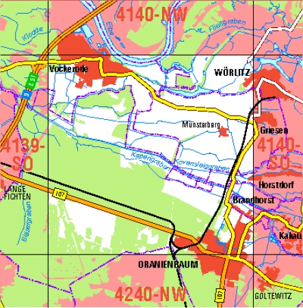 Maßstab 1:10 000, Nomenklatur: 4140-SW, Name des Kartenblatts: Vockerode, Auflagejahr: 2023, Blattschnitt: Normalblattschnitt (Preußische Landesaufnahme), Gradabteilungskarte mit 5 min geographischer Länge und 3 min geographischer Breite, Geodätischer Raumbezug: GRS80-Ellipsoid, ...