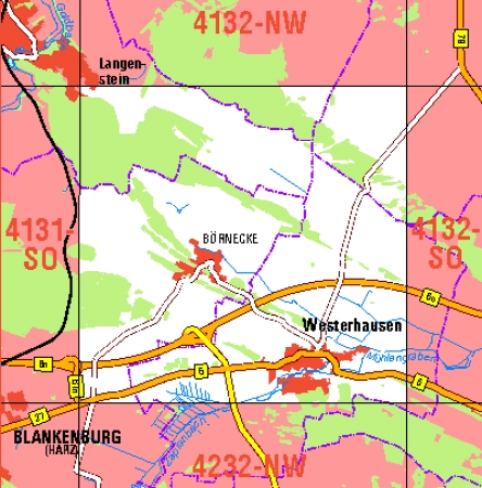 Maßstab 1:10 000, Nomenklatur: 4132-SW, Name des Kartenblatts: Westerhausen, Auflagejahr: 2023, Blattschnitt: Normalblattschnitt (Preußische Landesaufnahme), Gradabteilungskarte mit 5 min geographischer Länge und 3 min geographischer Breite, Geodätischer Raumbezug: GRS80-Ellipsoid, ...