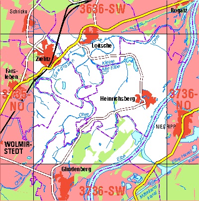 Maßstab 1:10 000, Nomenklatur: 3736-NW, Name des Kartenblatts: Zielitz, Auflagejahr: 2022, Blattschnitt: Normalblattschnitt (Preußische Landesaufnahme), Gradabteilungskarte mit 5 min geographischer Länge und 3 min geographischer Breite, Geodätischer Raumbezug: GRS80-Ellipsoid, ...