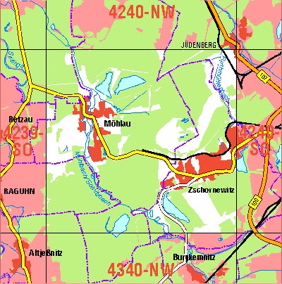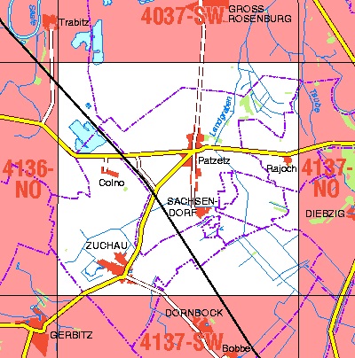 Maßstab 1:10 000, Nomenklatur: 4137-NW, Name des Kartenblatts: Zuchau, Auflagejahr: 2022, Blattschnitt: Normalblattschnitt (Preußische Landesaufnahme), Gradabteilungskarte mit 5 min geographischer Länge und 3 min geographischer Breite, Geodätischer Raumbezug: GRS80-Ellipsoid, ...