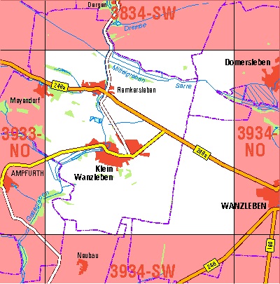 Maßstab 1:10 000, Nomenklatur: 3934-NW, Name des Kartenblatts: Zuckerdorf Klein Wanzleben, Auflagejahr: 2023, Blattschnitt: Normalblattschnitt (Preußische Landesaufnahme), Gradabteilungskarte mit 5 min geographischer Länge und 3 min geographischer Breite, Geodätischer Raumbezug: ...