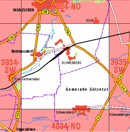 Maßstab 1:10 000, Nomenklatur: 3934-SO, Name des Kartenblatts: Bottmersdorf, Auflagejahr: 2021, Blattschnitt: Normalblattschnitt (Preußische Landesaufnahme), Gradabteilungskarte mit 5 min geographischer Länge und 3 min geographischer Breite, Geodätischer Raumbezug: GRS80-Ellipsoid, ...