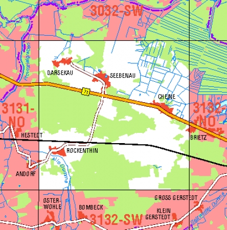 Maßstab 1:10 000, Nomenklatur: 3031-SO, Name des Kartenblatts: Clenze, Auflagejahr: 2022, Der Anteil Sachsen-Anhalt (ST) kann bis zur Landesgrenze Niedersachsen (NI) bereitgestellt werden. Das Gebiet zu NI wird als weiße Fläche dargestellt. Blattschnitt: Normalblattschnitt (Preußische ...