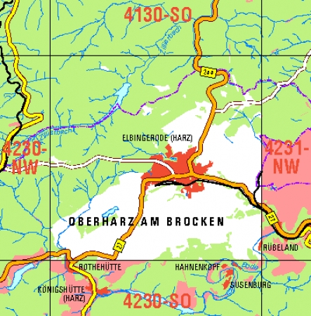 Maßstab 1:10 000, Nomenklatur: 4230-NO, Name des Kartenblatts: Elbingerode (Harz), Auflagejahr: 2022, Blattschnitt: Normalblattschnitt (Preußische Landesaufnahme), Gradabteilungskarte mit 5 min geographischer Länge und 3 min geographischer Breite, Geodätischer Raumbezug: ...