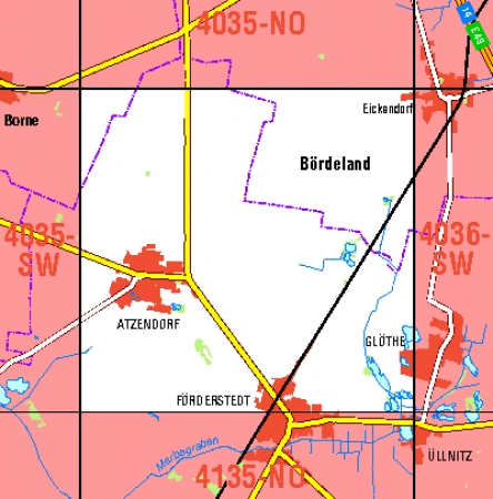 Maßstab 1:10 000, Nomenklatur: 4035-SO, Name des Kartenblatts: Atzendorf, Auflagejahr: 2025, Blattschnitt: Normalblattschnitt (Preußische Landesaufnahme), Gradabteilungskarte mit 5 min geographischer Länge und 3 min geographischer Breite, Geodätischer Raumbezug: GRS80-Ellipsoid, ...