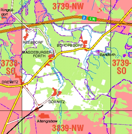 Maßstab 1:10 000, Nomenklatur: 3739-SW, Name des Kartenblatts: Magdeburgerforth, Auflagejahr: 2021, Blattschnitt: Normalblattschnitt (Preußische Landesaufnahme), Gradabteilungskarte mit 5 min geographischer Länge und 3 min geographischer Breite, Geodätischer Raumbezug: GRS80-Ellipsoid, ...